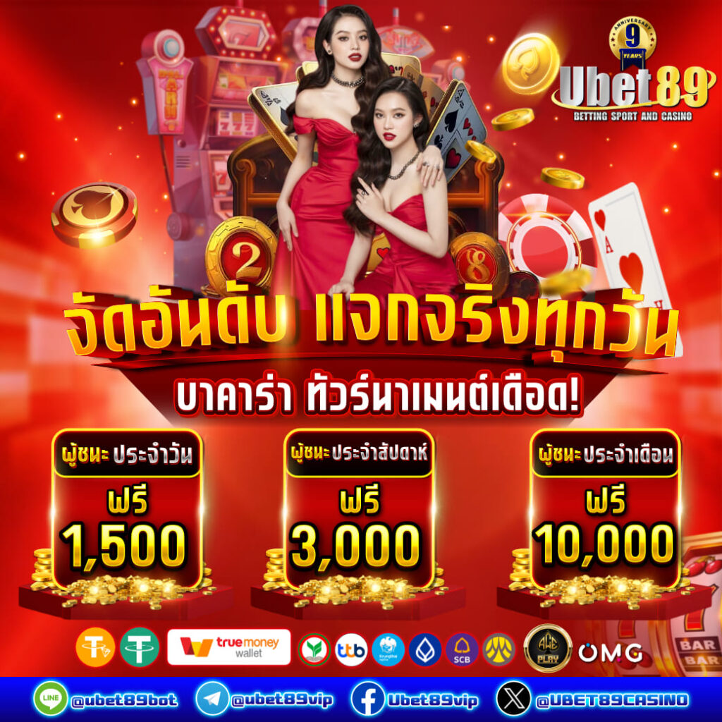 - มีโปรโมชั่นและโบนัสมากมายUbet89 มีโปรโมชั่นและโบนัสมากมาย ซึ่งทำให้ผู้เล่นได้รับประโยชน์จากการเล่นเกมคาสิโนมากขึ้น